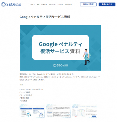 東京SEOメーカーでは、Googleペナルティ復活サービスを提供しています。
