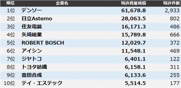詳細については、ランキングデータ「自動車部品 特許資産規模ランキング2023」にてご覧いただけます。