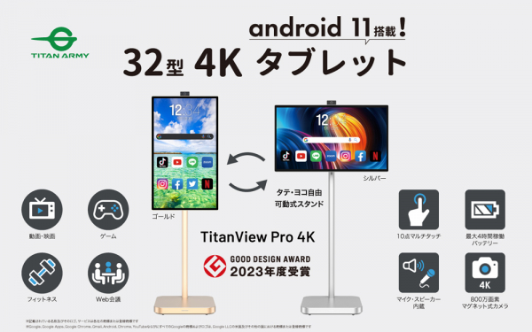 32型 4Kモニター搭載 Androidタブレット「TitanView Pro 4K」
