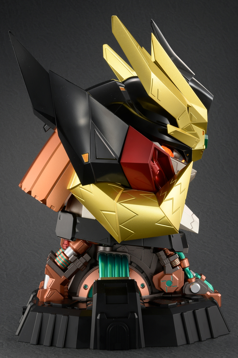 マスク部分は別パーツ化し、マグネットによる脱着ギミックを搭載することで、ファイナルフュージョン合体バンクシーンにおけるマスク装着シークエンスを細かく再現する事が可能。