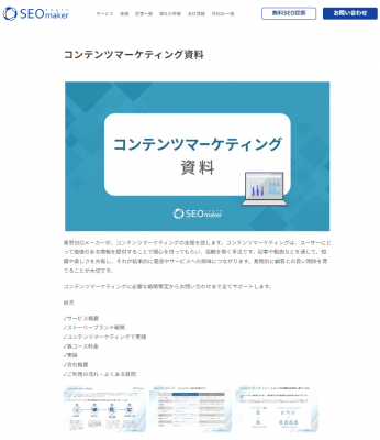 SEO対策(国内・海外)の専門会社のアドマノ株式会社(東京都豊島区、代表取締役社長:天野剛志)は、サービスサイト「東京SEOメーカー」において、コンテンツマーケティング資料ダウンロードページを11月9日新規リニューアル公開しました。サービス資料も新しく作り直しました。