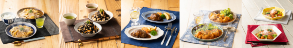 11月20日(月)販売開始となる初回月のメニューは、和食「豚肉の生姜焼き 梅風味」・「ツナとひじきのうま煮」、洋食「チーズインハンバーグ」・「鶏のヴィネガー風味」、中華「海老のチリソース煮込み」の5メニューです。