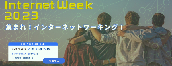 「Internet Week」は、インターネットに関する技術の研究・開発、 構築・運用・サービスに関わる人々が一堂に会し、主にインターネットの基盤技術の基礎知識や最新動向を学び、 議論し、理解と交流を深めるためのイベントです。また、「Internet Week」で得られたものを、ご自分のフィールドで役立てていただくことにより、インターネットの普及・促進・発展に貢献する(繋げる)ことを目的としています。
