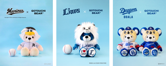 観光土産品の企画・製造・卸売を行う、ANAグループの株式会社FUJISEY(本社:山梨県甲府市、代表取締役社長:小口浩子)は、全国各地の観光地などで販売している「ご当地ベア」と球団マスコットのコラボ企画として、千葉ロッテマリーンズの「マーくん」、埼玉西武ライオンズの「レオ」、中日ドラゴンズの「ドアラ」のコラボベアを、球場のオフィシャルストアや観光地、空港のANA FESTA一部店舗などで順次発売いたします。
