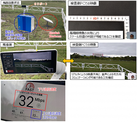 実証結果:「Starlink Business」による高速通信を活用することで、Gリポートの特徴である検査側への低遅延での現場側映像の共有や、細かい文字の判読を可能とする高精細映像の共有が、問題なく行えることを確認