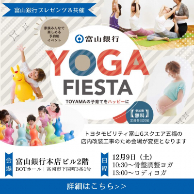 一般社団法人ボディセンス・インスティテュートは、12月9日(土)株式会社富山銀行 本店コンサルティングプラザ様にて、無料ヨガイベント「HAPPY YOGA FIESTA」を開催します。