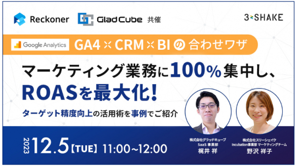 株式会社グラッドキューブ(本社:大阪市中央区 代表取締役 CEO 金島 弘樹 以下:グラッドキューブ)は、2023年12月5日(火)に株式会社スリーシェイクとウェビナーを開催いたします。
