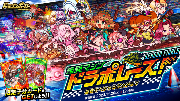 株式会社アソビズム(本社:東京都千代田区、代表取締役:大手智之)は、App Store・Google Playにて好評配信中のリアルタイム合体カードバトル『ドラゴンポーカー』で、2023年11月20日(月)より復刻スペシャルダンジョン「絶発マシン ドラポレース!SEASON FINALS」を開催いたします。