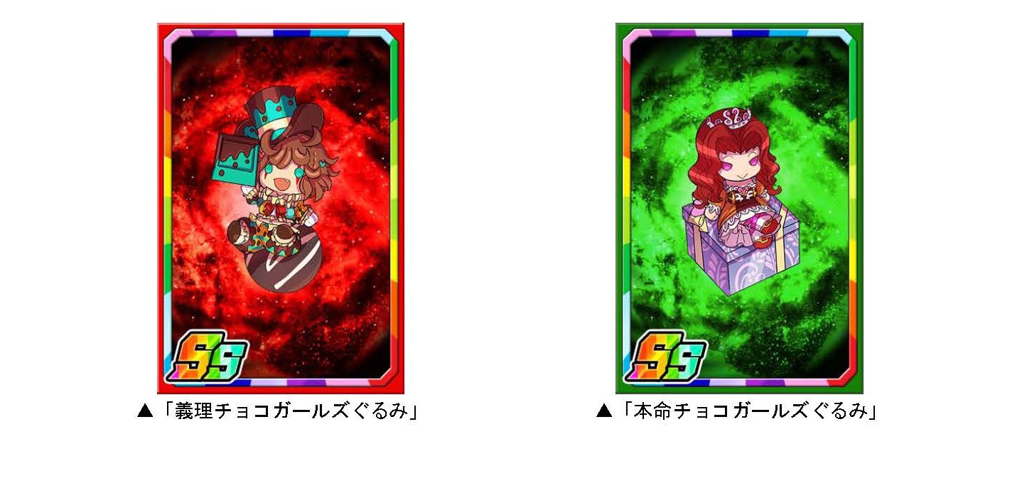 ダンジョンのボスモンスターを倒すと、まれに新たな限定子分カード「義理チョコガールズぐるみ」「本命チョコガールズぐるみ」が手に入ります。限定子分カードは複数枚集めると進化ができ、子分スキルの効果が強力になります。