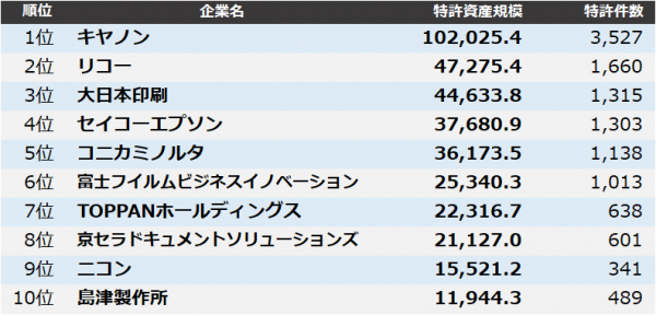 集計の結果、1位 キヤノン、2位 リコー、3位 大日本印刷となりました。