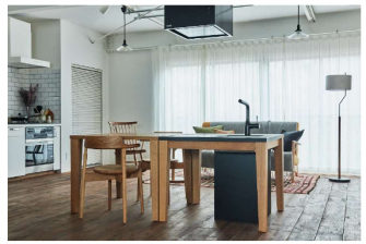 キッチンテーブル『HIROMA』は、家事の省力化や、住宅・LDK空間のコンパクト化が進む現代において新 しいLDKの在り方や暮らしを提案する、新しい概念のキッチンです。キッチンの要素を極力シンプルにしダイニングテーブルと融合させた、生活感を感じさせないデザイン・機能性から、オフィスやコミュニティ施設などの非住宅でも注目されています。