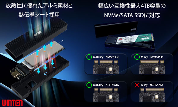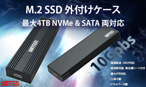 M.2 SSD「SATA / NVMe」の両方に対応した、外付けSSDケース(WTSSD-E01-BK / WTSSD-E02-BK)を2023年11月21日より、