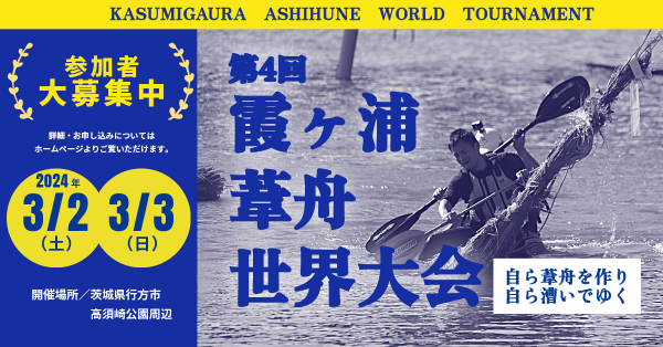 NPO法人 霞ヶ浦アカデミー(理事長:荒井 一美、所在地:茨城県行方市)は、「第4回 葦舟世界大会(正式名称:ニホンウナギ杯争奪 第4回 霞ヶ浦葦舟世界大会)」を2024年3月2日及び3日にに開催します。
