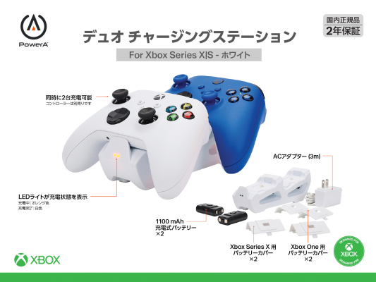 ・ 付属品:バッテリーカバー4枚 (Xbox Series X|S 用 2枚 + Xbox One 用 2枚)、1100mAh 充電式バッテリー2本、ACアダプター (3m)