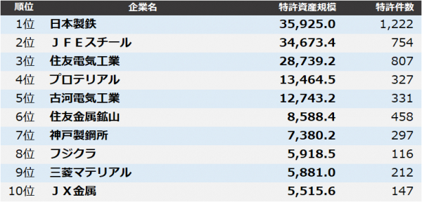 株式会社パテント・リザルトは11月27日、「鉄鋼・非鉄金属・金属製品業界」の特許を対象に、各社が保有する特許資産を質と量の両面から総合評価した「鉄鋼・非鉄金属・金属製品業界 特許資産規模ランキング2023」をまとめました。2022年4月1日から2023年3月末までの1年間に登録された特許を対象に、個別特許の注目度を得点化する「パテントスコア」を用いた評価を行い、企業ごとに総合得点を集計しました。
