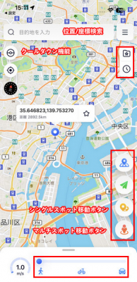 これは先程と同様にアプリの検索欄に住所や地名を入力することで、指定した場所に一瞬で移動できるモードです。もちろん国外にも対応しています。