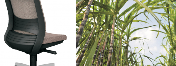 環境に配慮した植物由来のバイオPET糸を使用したメッシュ素材を新規開発。座クロスにもバイオマス由来のPET糸クロスを採用しており、原料の一部を植物由来に置き換えることで石油資源の利用を抑制し、 環境に配慮したサステナブルな製品づくりを行っています。
