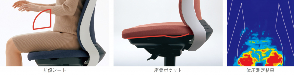 独自機構の「坐骨ポケット」により、着座すると坐骨周辺が沈みこんでお尻全体を支えます。前滑りを防ぎ、骨盤を後ろ側から支えることで、骨盤が立ちやすくなり、安定して座ることができます。