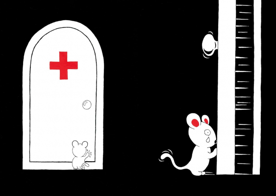 指をケガしたねずみが、Dr.Bのもとを訪れ、包帯を巻いてもらいます。