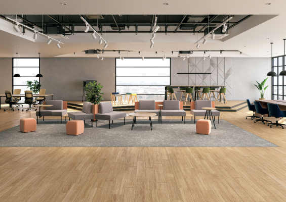 オフィスに来た人が集まるワークラウンジでの「ゆとり」と「つながり」を形づくり、一人ひとりの生産性を向上させ、創造性をかきたてます。