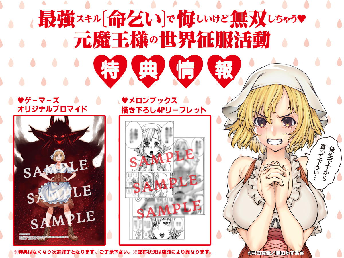 株式会社ヒーローズ(所在地:東京都千代田区、代表取締役:白井勝也)は、弊社が運営するマンガ配信サイト「コミプレ-Comiplex-」にて連載している『最強スキル「命乞い」で悔しいけど無双しちゃう元魔王様の世界征服活動』(原作:村田真哉、作画:隅田かずあさ)の第1巻を、2023年11月29日(水)に発売いたします。