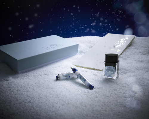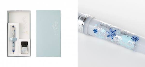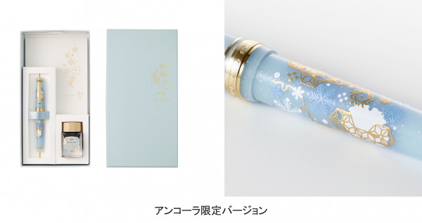 プラスとセーラー万年筆が共同運営している万年筆・文房具ギフトショップ「ancora(アンコーラ)」(https://www.ancora-shop.jp)では、アンコーラ限定バージョンの初雪セットを数量限定で同時発売します。メーカー希望小売価格(税込)は、35,200円です。