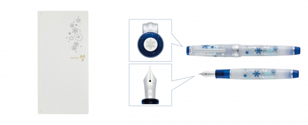 プラス株式会社(東京都港区 代表取締役社長 今泉忠久、以下プラス)と、セーラー万年筆株式会社(東京都港区 代表取締役社長 町克哉、以下セーラー万年筆)は、“初雪”をテーマにノート、万年筆、ボトルインクをセットにした「カ.クリエ プレミアムクロス×プロフェッショナルギアスリム 初雪限定セット」を2023年12月7日に数量限定発売します。