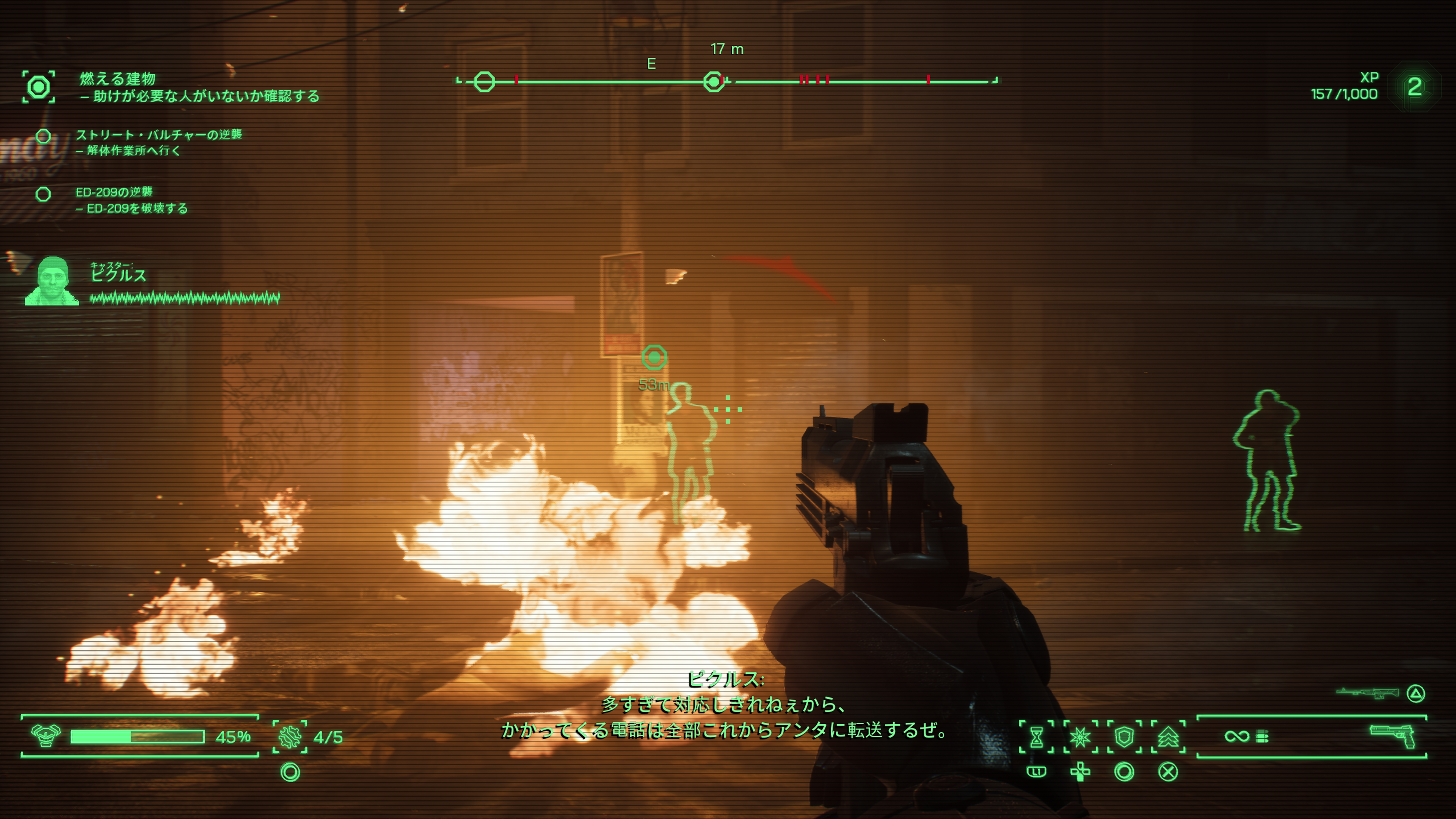 本作では半分人間、半分マシーンであるロボコップの行動や選択に応じてストーリーが変化し、エンディングが分岐します。プレイヤーは行動を選択し、ロボコップの視点で様々なミッションに挑戦することになりますが、各ミッションにおけるNPCとの対話によって多彩なイベントが発生します。キャラクターの成長やアップグレード機能も充実しており、プレイヤーは戦略的に進化させたロボコップで各ミッションを攻略することが出来ます。