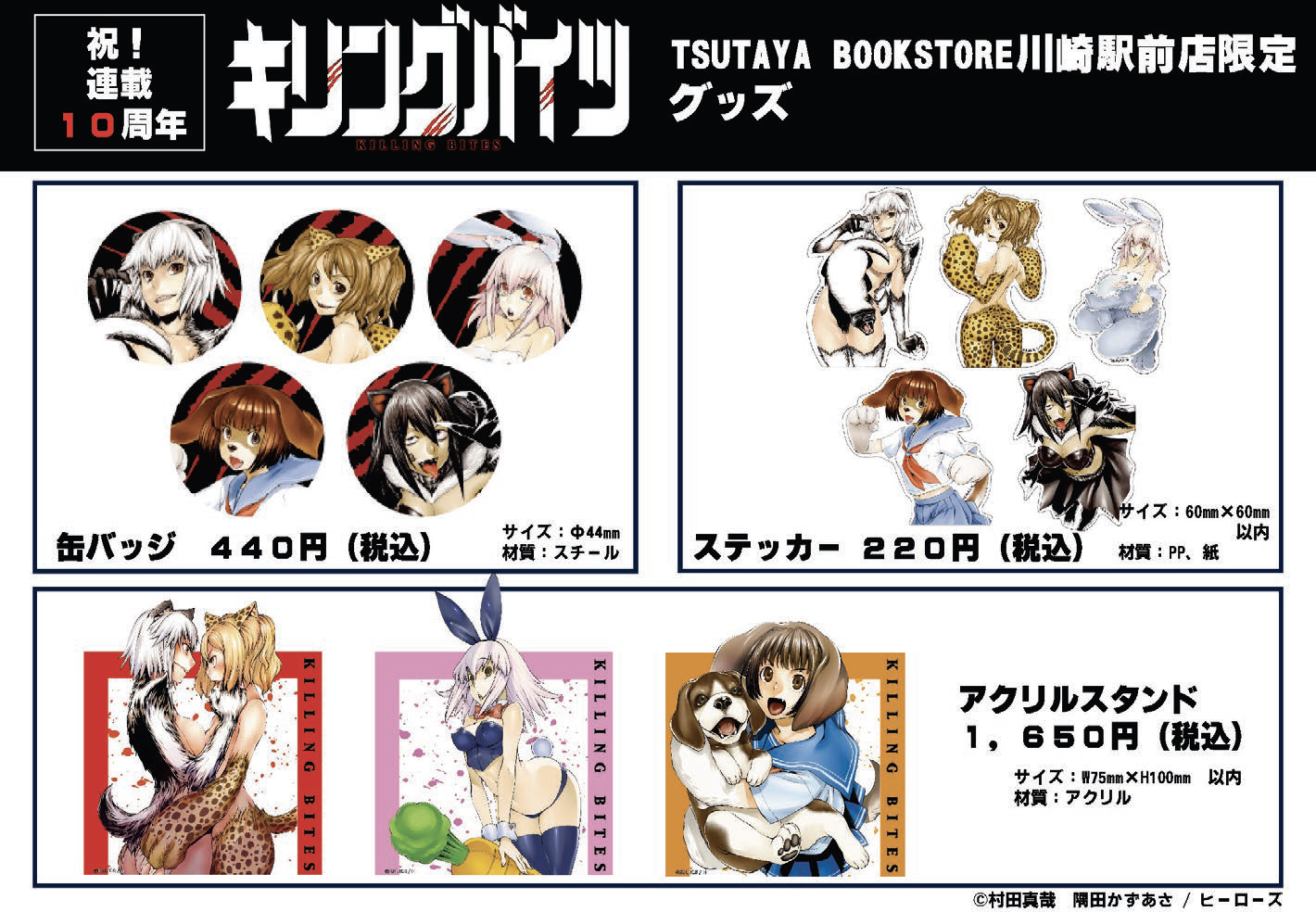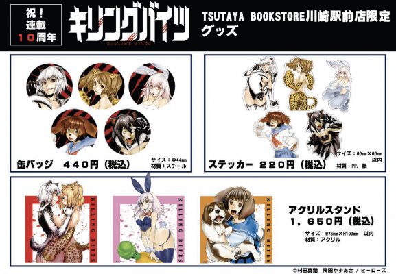 『キリングバイツ』連載10周年を記念して、TSUTAYA BOOKSTORE川崎駅前店でフェアを開催いたします。名シーンの複製原画展示に加え、コミックスをご購入の方にはTSUTAYA BOOKSTORE川崎駅前店限定の特典を封入。さらに10周年記念グッズの販売も実施いたします。