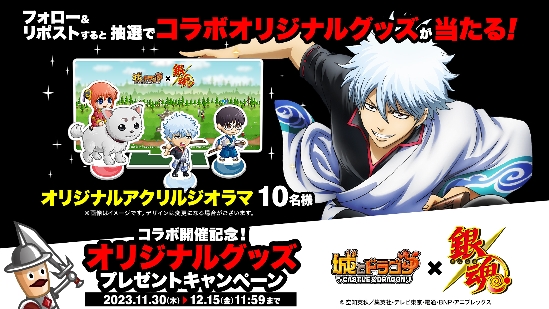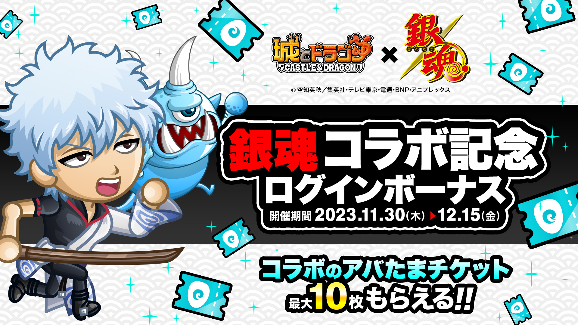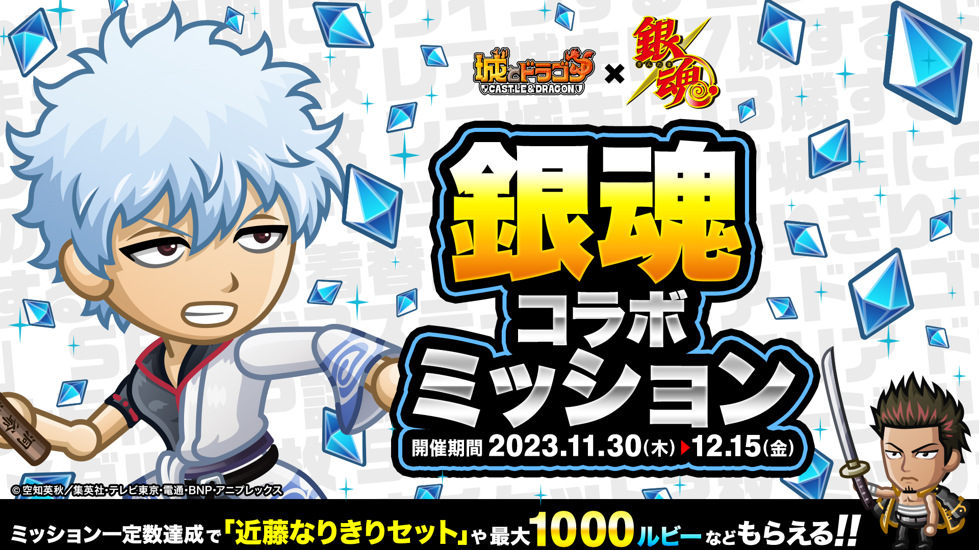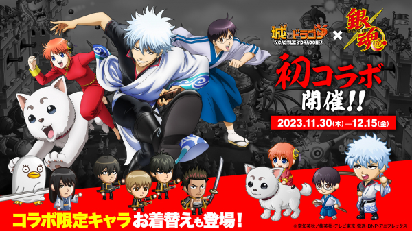 株式会社アソビズム(本社:東京都千代田区、代表取締役:大手智之)は、App Store・Google Playにて好評配信中の『城とドラゴン』で、TVアニメ『銀魂』との初のコラボイベントを、2023年11月30日(木)より開催いたします。
