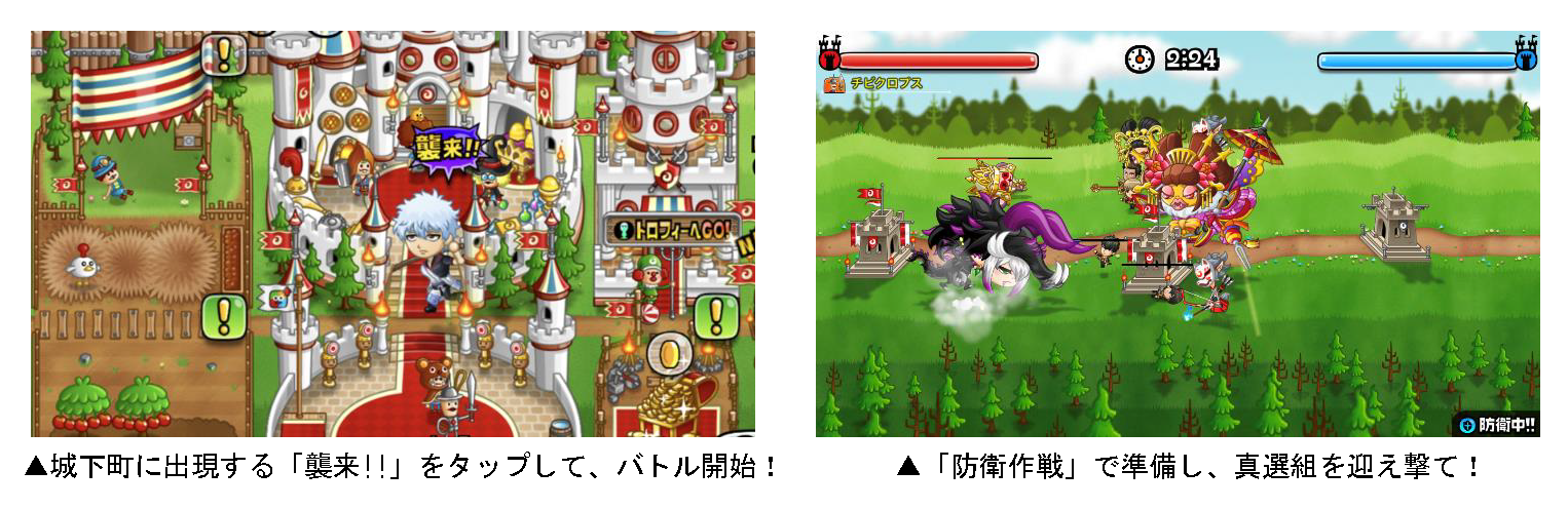 「真選組」が城ドラのキャラを引き連れ、襲来してくるイベントです。あらかじめ設定しておいた「防衛作戦」で城を守り、見事撃退すると「ルビー」や「ドラゴンメダル」などの報酬を獲得することができます。襲来に備えて防衛隊列を整えましょう!