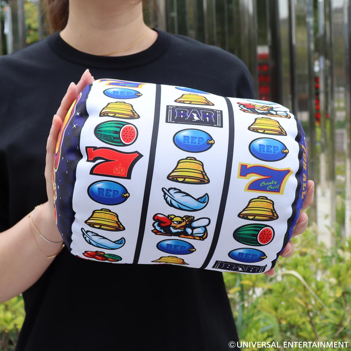 スロット新機種「クランキークレスト」のリール配列を忠実に再現したクッションが登場!