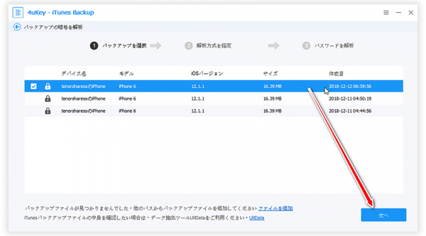 対処法2:iTunesバックアップ暗号解析ソフト4ukey - iTunes Backupを使用する
