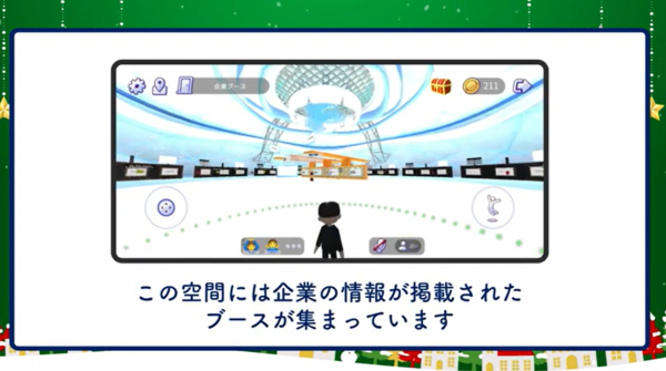 学生は一方的な説明を聞くだけでなく、メタバース内でアバター同士友人や採用担当者とコミュニケーションをとることができるので、ゲーム感覚で楽しく参加できます。