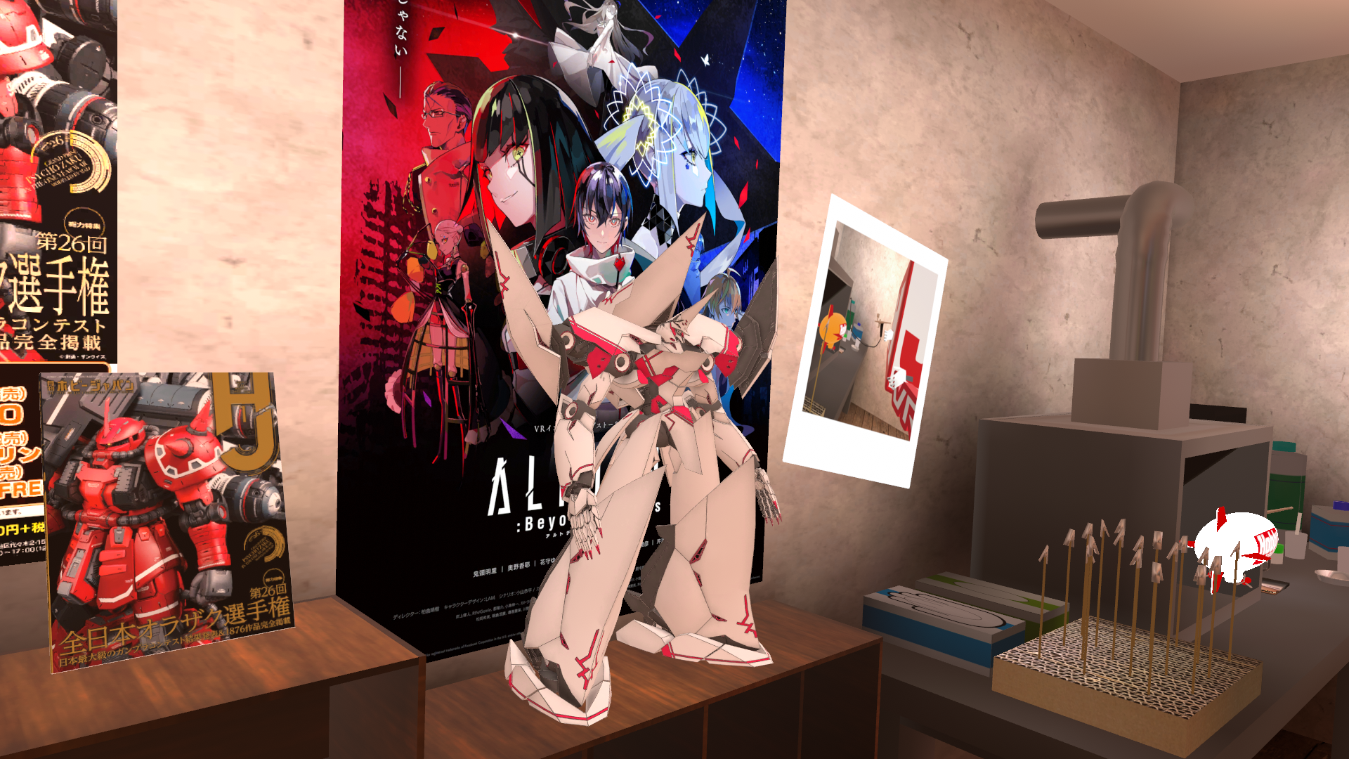 ホビージャパンが運営するVRワールド『ホビージャパン駅前商店街』でVRゲーム『ALTDEUS: Beyond Chronos』に登場する巨大人型兵器「アルト・マキア」の3Dモデルを展示します。VR内では3Dモデルを実際に手に取ることができ、自由な角度から鑑賞できます。