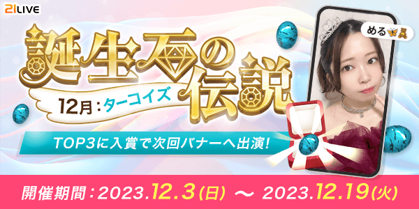 株式会社エムアンドティーティー(本社:沖縄県北谷町、代表取締役:井藤 三知子)が運営するエンターテイメント・ライブ配信アプリ【21LIVE(ニーイチライブ)】URL: https://21.live では、12月3日(日)より誕生石アイテム・ターコイズの獲得数を競うイベントを開催いたします。