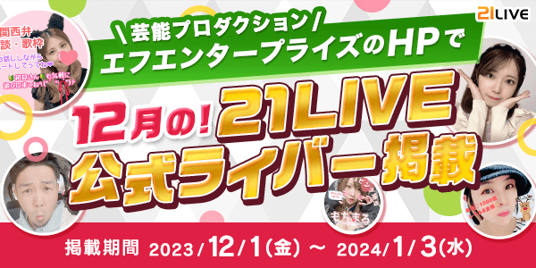12月1日(金)より、21LIVEの12月度公式ライバーが芸能プロダクション・株式会社エフエンタープライズ(F.Enterpris)のホームページに掲載されています。(https://fenterprise.jp/)