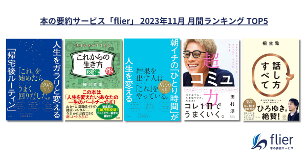 累計会員数110万人を突破した本の要約サービス「flier(フライヤー)」を運営する株式会社フライヤー(本社:東京都千代田区、代表取締役CEO 大賀康史)は、2023年11月のビジネス書月間ランキングを発表しました。