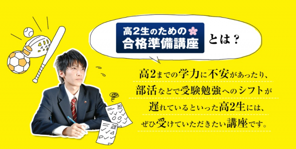 この時期から新高3生を対象に総復習のための講座を開講する予備校はまだ多くありません。春期講習にさきがけて受験勉強をスタートさせようという人やこれまで通っていた予備校で伸び悩んでいる人が受講を希望しています。高3への進級直前2か月で、これまでの総復習と弱点の徹底点検を目的としています。