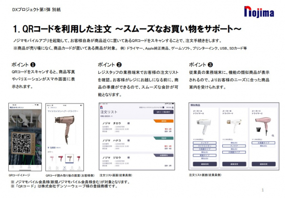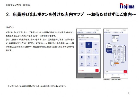 ノジマは、リアル店舗ならではの、お買い物をすることの楽しさや喜び、ワクワク感をお客様により一層感じていただくことを目指す「感動接客」をさらに進化させるべく、引き続き「DXプロジェクト」を推進してまいります。