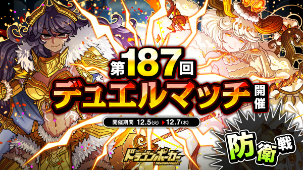 株式会社アソビズム(本社:東京都千代田区、代表取締役:大手智之)は、App Store・Google Playにて好評配信中のリアルタイム合体カードバトル『ドラゴンポーカー』で、2023年12月5日(火)より「第187回デュエルマッチ本戦」を開催いたします。