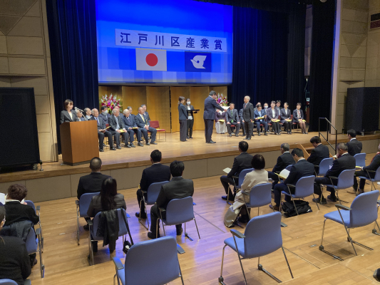 12月4日(月)にタワーホール船堀にて行われた授賞式にて表彰、表彰状や記念品を授与されました。