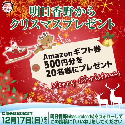 そんな明日香野から、12月4日に開始した「明日香野からクリスマスプレゼント」キャンペーンのご案内です。