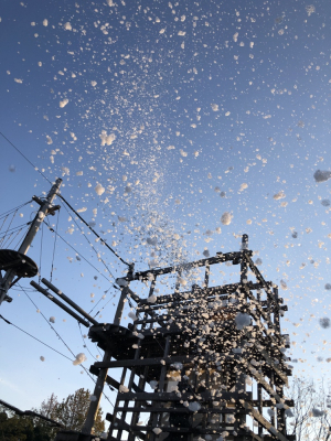 イベント期間限定で、「侍大将コース」のゴール地点に「泡大砲」を設置。一度に30リットルの泡をエリア全体に放出し、まるで雪が降るような演出でお客様に冬の「クレヨンしんちゃんアドベンチャーパーク」をお楽しみ頂くとともに、足元を濡らすことにより、アスレチックの難易度をUPさせる