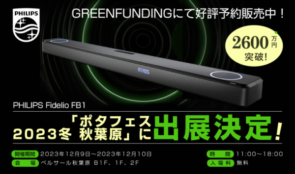 鑫三海株式会社(本社:大阪府堺市堺区、代表取締役:伴場 義通)は、2023年12月9日(土)・10日(日)にベルサール秋葉原で開催される「ポタフェス2023冬 秋葉原」にPHILIPS製サウンドバー Philips Fidelio FB1を出展します。