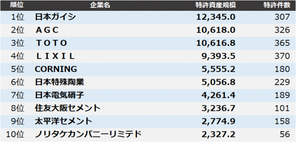 株式会社パテント・リザルトは12月8日、「窯業業界」の特許を対象に、各社が保有する特許資産を質と量の両面から総合評価した「窯業業界 特許資産規模ランキング2023」をまとめました。2022年4月1日から2023年3月末までの1年間に登録された特許を対象に、個別特許の注目度を得点化する「パテントスコア」を用いた評価を行い、企業ごとに総合得点を集計しました。