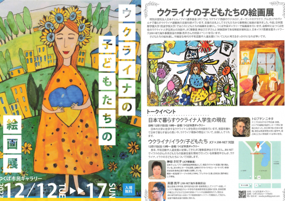 日本国際学園大学(現:筑波学院大学、学校法人日本国際学園、つくば市)は、2023年12月12日(火)から17日(日)まで、つくば市民ギャラリーにて「ウクライナの子どもたちの絵画展」を開催いたします。また、17日(日)にトークイベント「日本で暮らすウクライナ人学生の現在」、「ウクライナ/イラク/子供たち JCF×JIM-NET」にて、ウクライナ人学生やゲストが対談します。