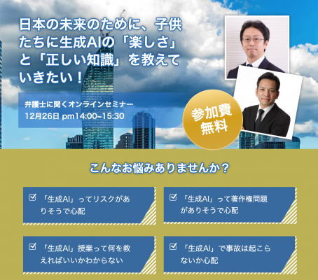 教育機関向け「弁護士に聞く【生成AI授業】の学校導入におけるリスクとガイドライン」