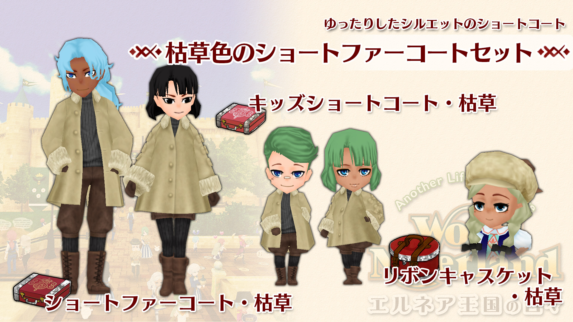 株式会社アルティ(本社:福岡県福岡市、代表取締役:宮崎慈彦)は、箱庭ライフシミュレーションゲーム『ワールドネバーランド エルネア王国の日々』Nintendo Switch版の新規追加コンテンツ『枯草色のショートファーコートセット』を12月14日(木)からニンテンドーeショップでダウンロード配信します。