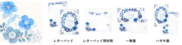 「チェンジズ・オブ・ネイチャー」は新緑~初夏の季節に向けた爽やかなレターシリーズ。今年は定番人気のブルーやグリーン基調のほか、初夏らしさのあるラベンダーカラーが仲間入り。水彩作家・なかにしいずみ氏を起用したみずみずしい絵柄も注目です。